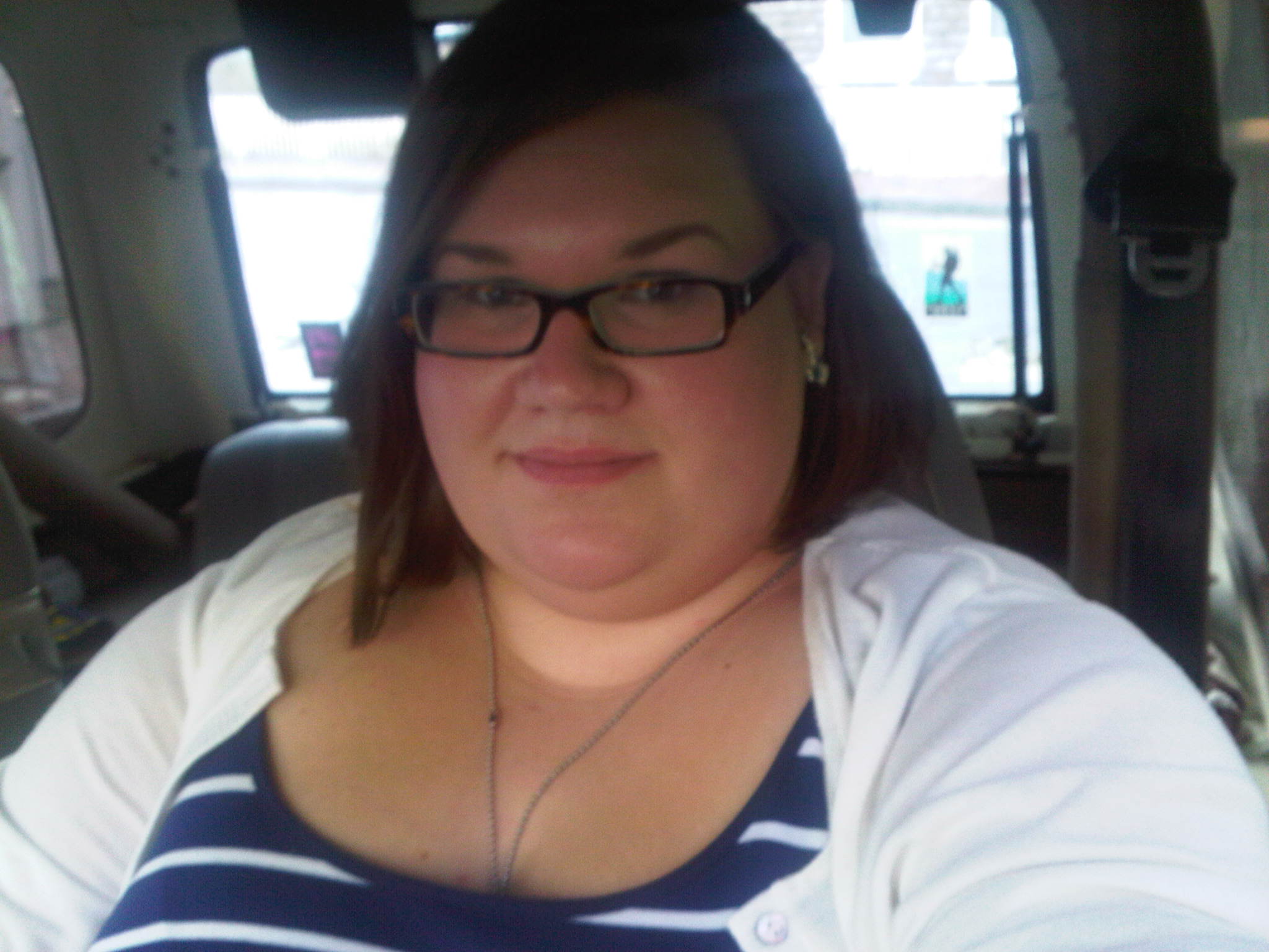 (Ignore the weird look on my face. It’s a combination of the fact that I was taking a picture of myself with my cellphone in the car, and that I’d just blinded myself with a flash two or three times with previous attempts.)